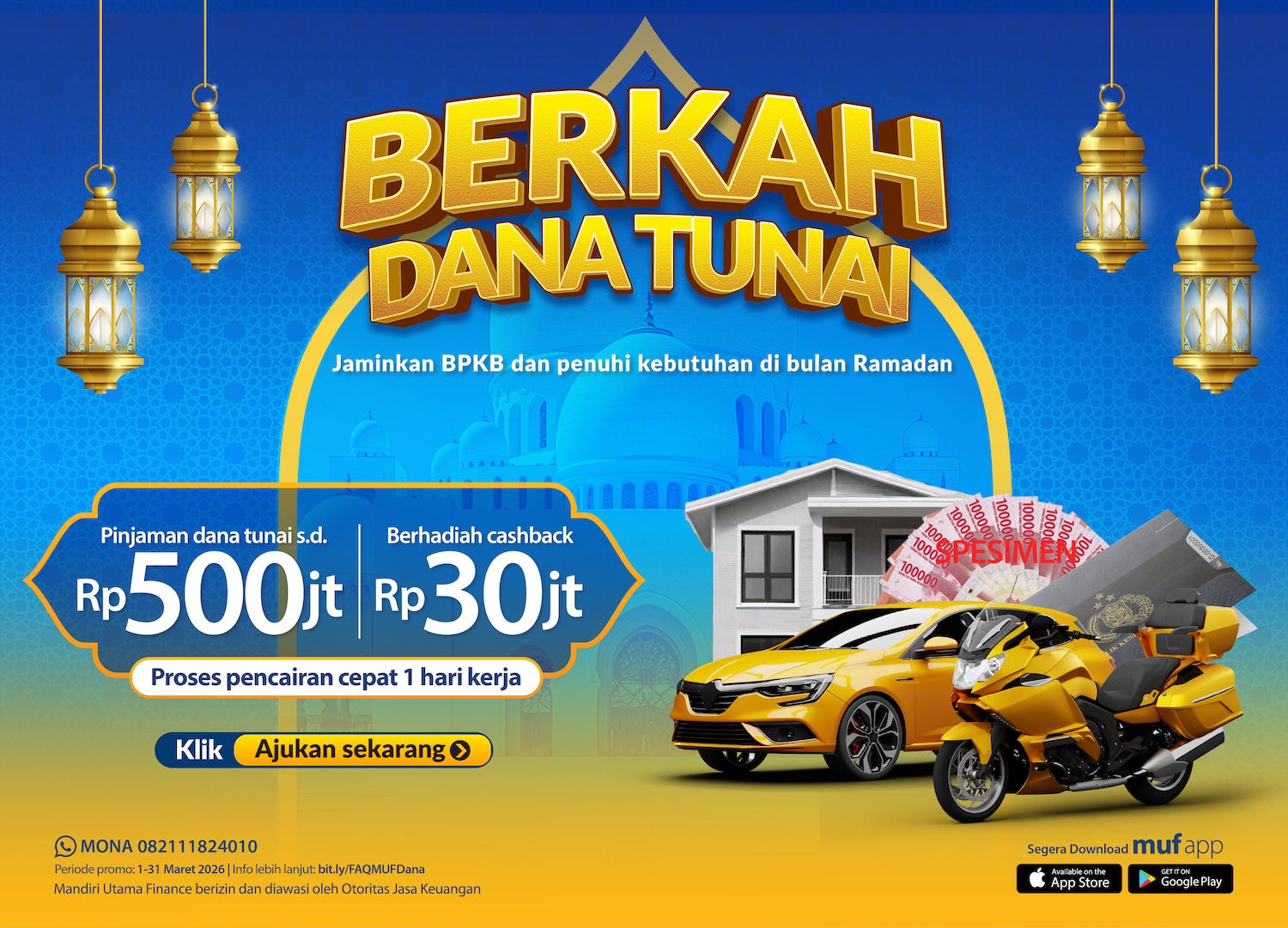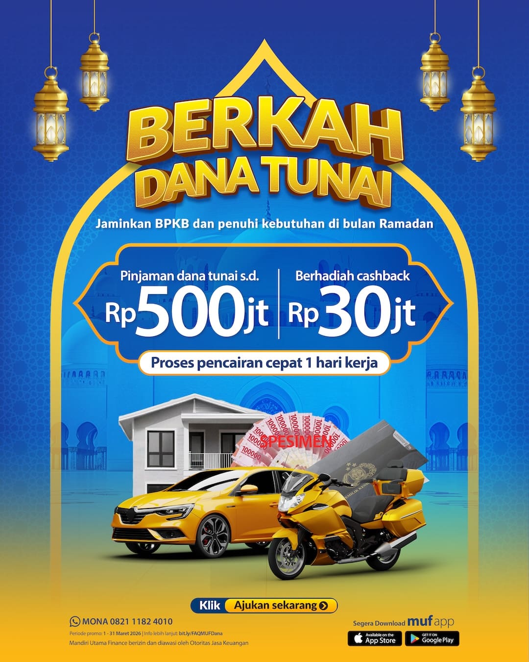 Data pribadi Anda penting bagi PT Mandiri Utama Finance (“Kami”) dan Kami ingin memastikan Anda mengetahui cara Kami memperoleh, menggunakan dan melindungi Data Pribadi Anda pada saat Anda sepakat menggunakan produk dan/atau layanan Kami. Privacy Notice Data Pribadi ini merupakan bentuk perwujudan dari upaya Kami dalam menjaga Hak Asasi Manusia (HAM) sebagaimana tercantum dalam Undang – Undang Dasar Negara Republik Indonesia Tahun 1945 pada Pasal 28G ayat (1). Kami dalam melaksanakan pemrosesan Data Pribadi Anda tetap memperhatikan Prinsip-prinsip Pemrosesan Data Pribadi sebagaimana tercantum dalam Undang – Undang Nomor 27 Tahun 2022 tentang “Pelindungan Data Pribadi”.